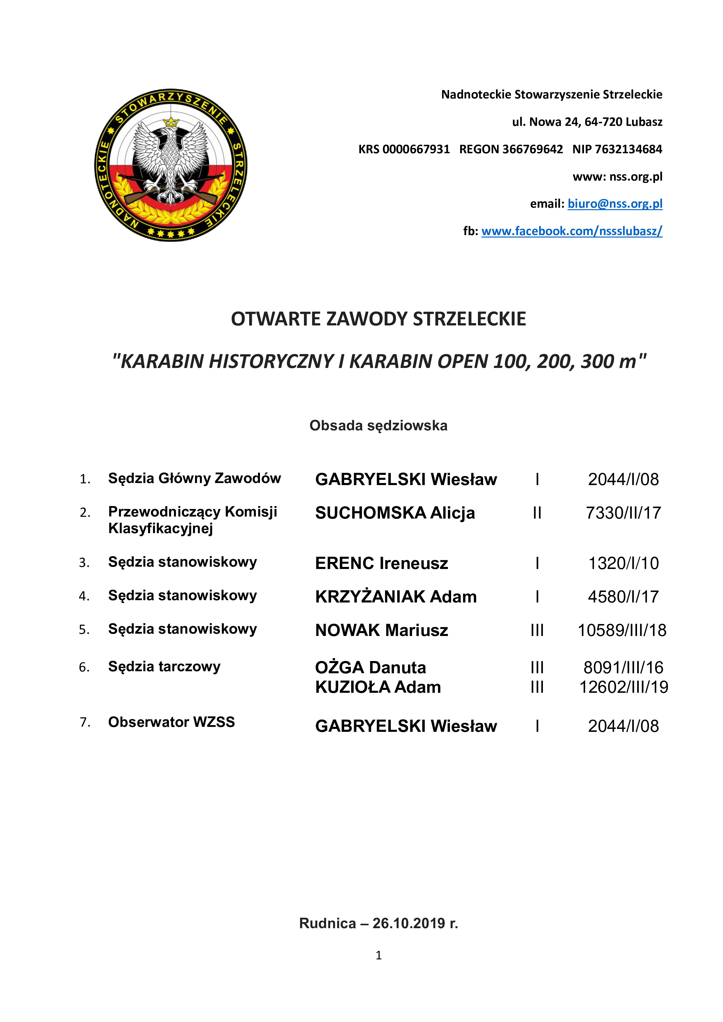 Zawody Karabin historyczne 06.10.2019 Nadnoteckie Stowarzyszenie Strzeleckie Karabin historyczny i karabin Open 100, 200, 300 m