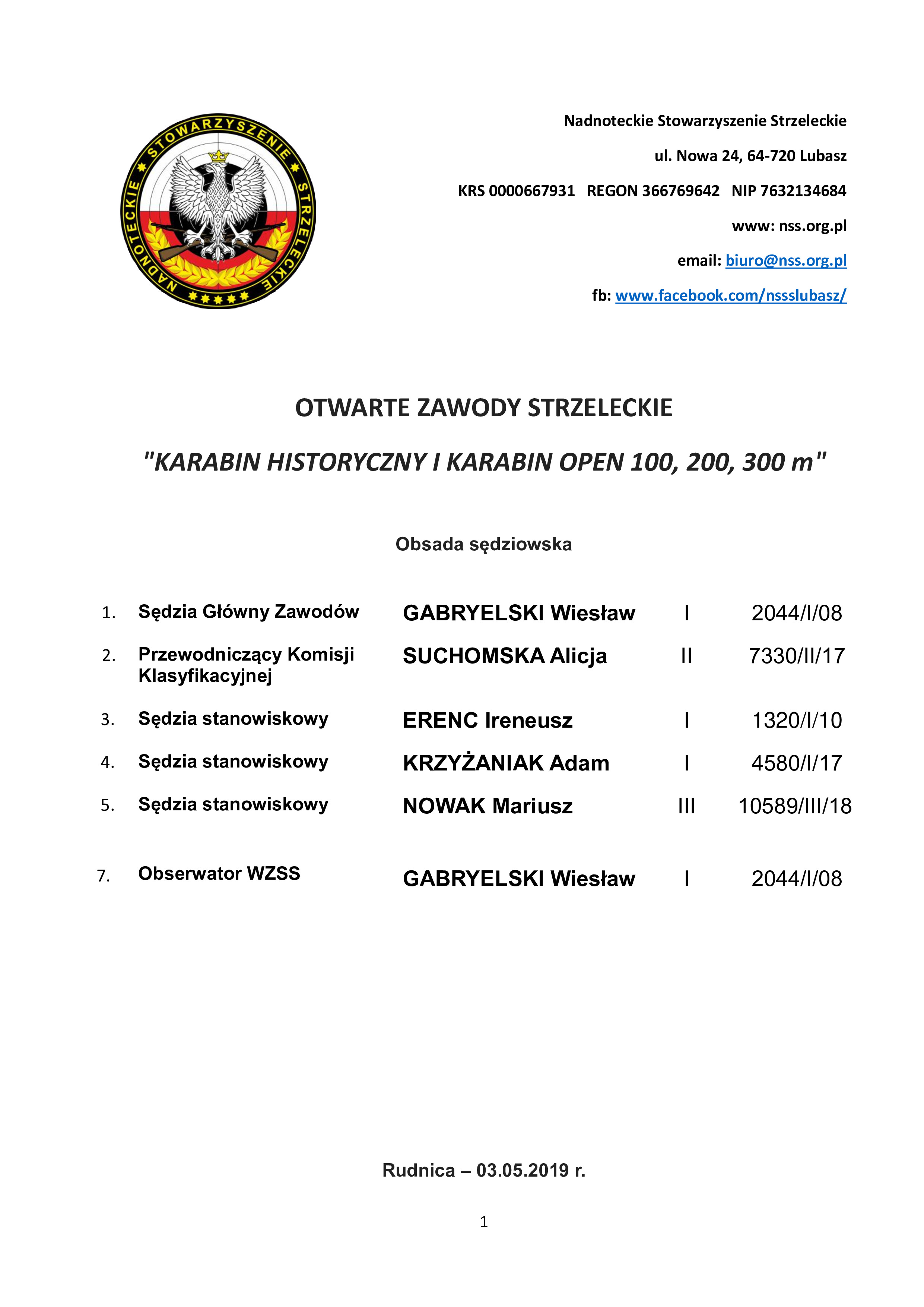 Zawody Karabin historyczny 08.05.2019 Nadnoteckie Stowarzyszenie Strzeleckie Karabin historyczny i karabin Open 100, 200, 300 m